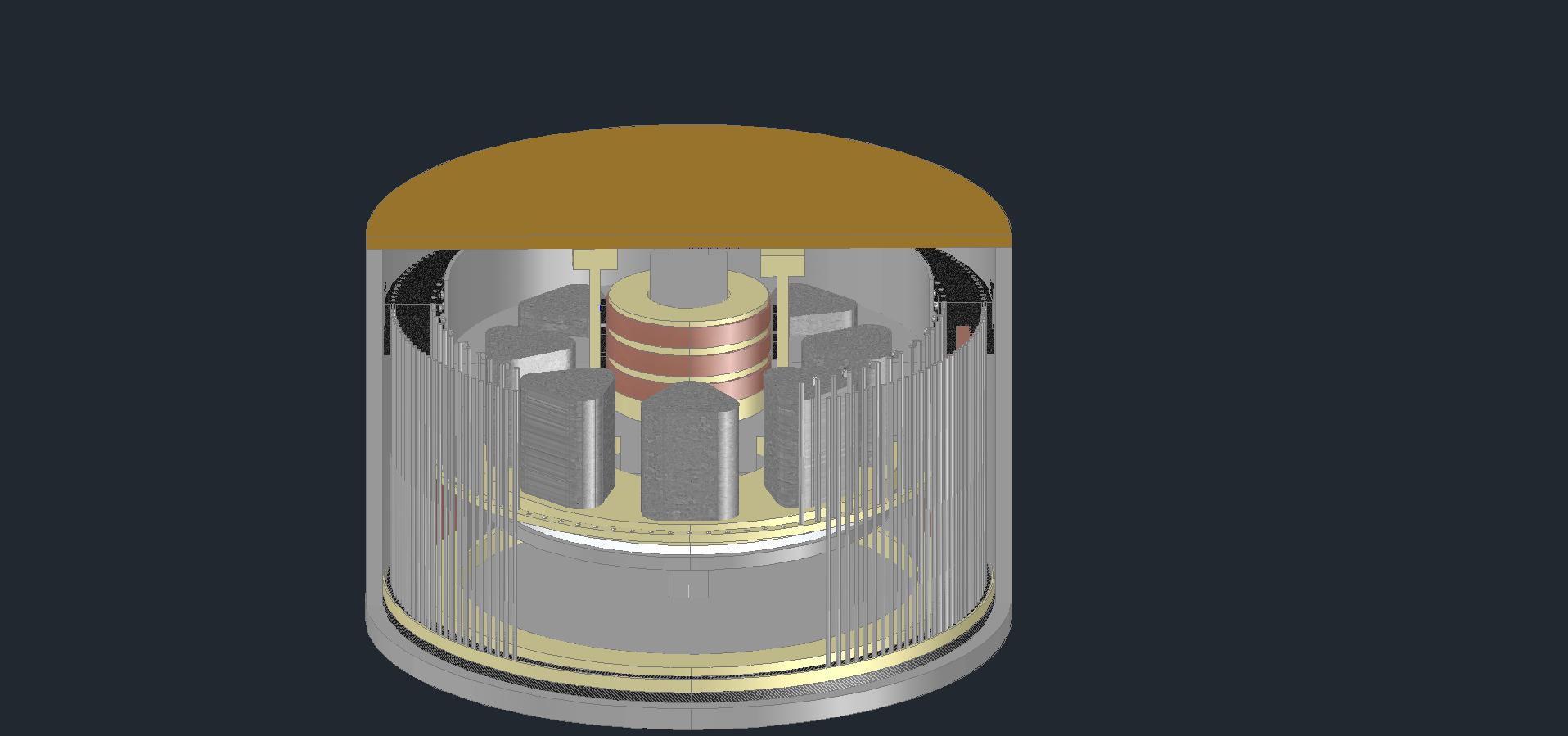 19) Casting for generator housing measures 22-3/4″ OD by 11-1/4″ high by 8-1/2″ID made of 42% zinc, 25% copper, 9.25% sulfur, 9% magnesium, and 2% tin. The Magnets #13 clear this casting by 1/16 space distance.