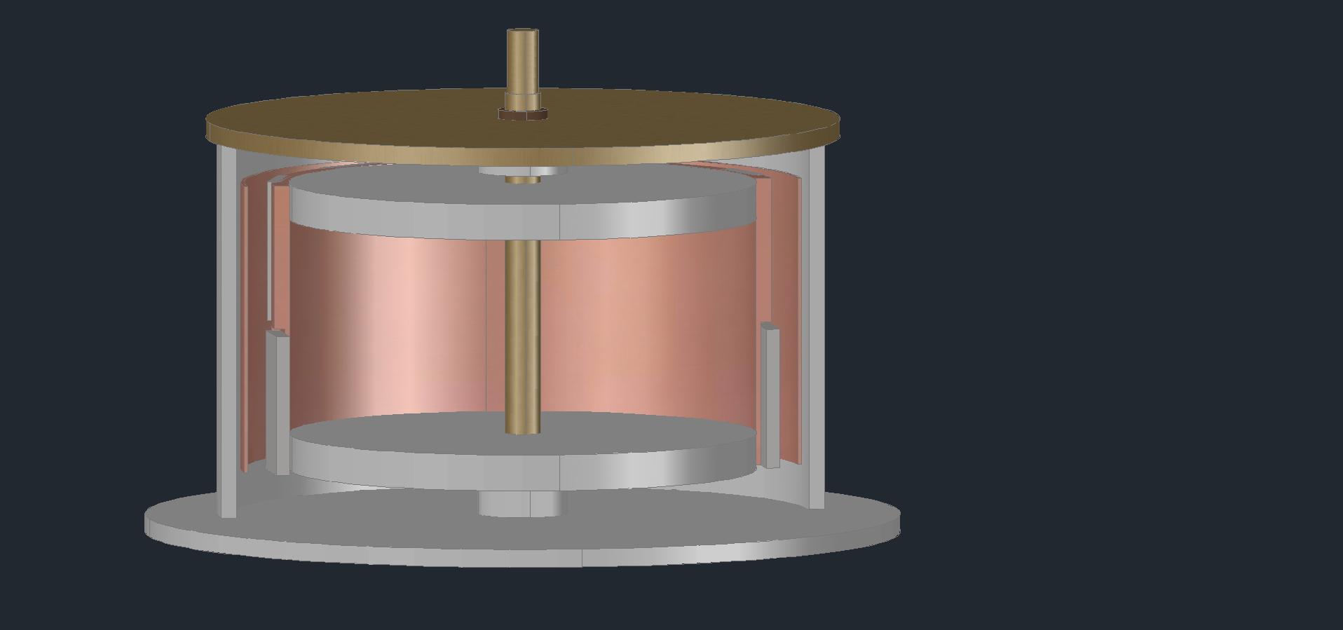 37) VERTICAL ALUMINUM ‘TUBE MEASURING 16-1/8″ I.D., 7/8″ THICK WALL AND 101/2″ HIGH. COILS #34 ARE UP AGAINST THIS TUBE’S INNER SURFACE WITH ONLY MASKING TAPE BETWEEN, THUS THE COILS ARE THE ONLY SUPPORT FOR PART #29. THIS ALUMINUM TUBE SERVES TO COMPLETE THE NECESSARY MAGNETIC CIRCUIT BY ITS THICKNESS WHICH SERVES TO SUPPLY THE NEEDED THERMOS-BOTTLE EFFECT, PREVENTING THE ESCAPE OF USEFUL MAGNETIC ENERGY AND ALSO AFFORDING EXIT POINTS FOR UNWANTED STRUCTURES WHICH THEN RETURN TO THE EARTH’S BALANCE SYSTEM.
